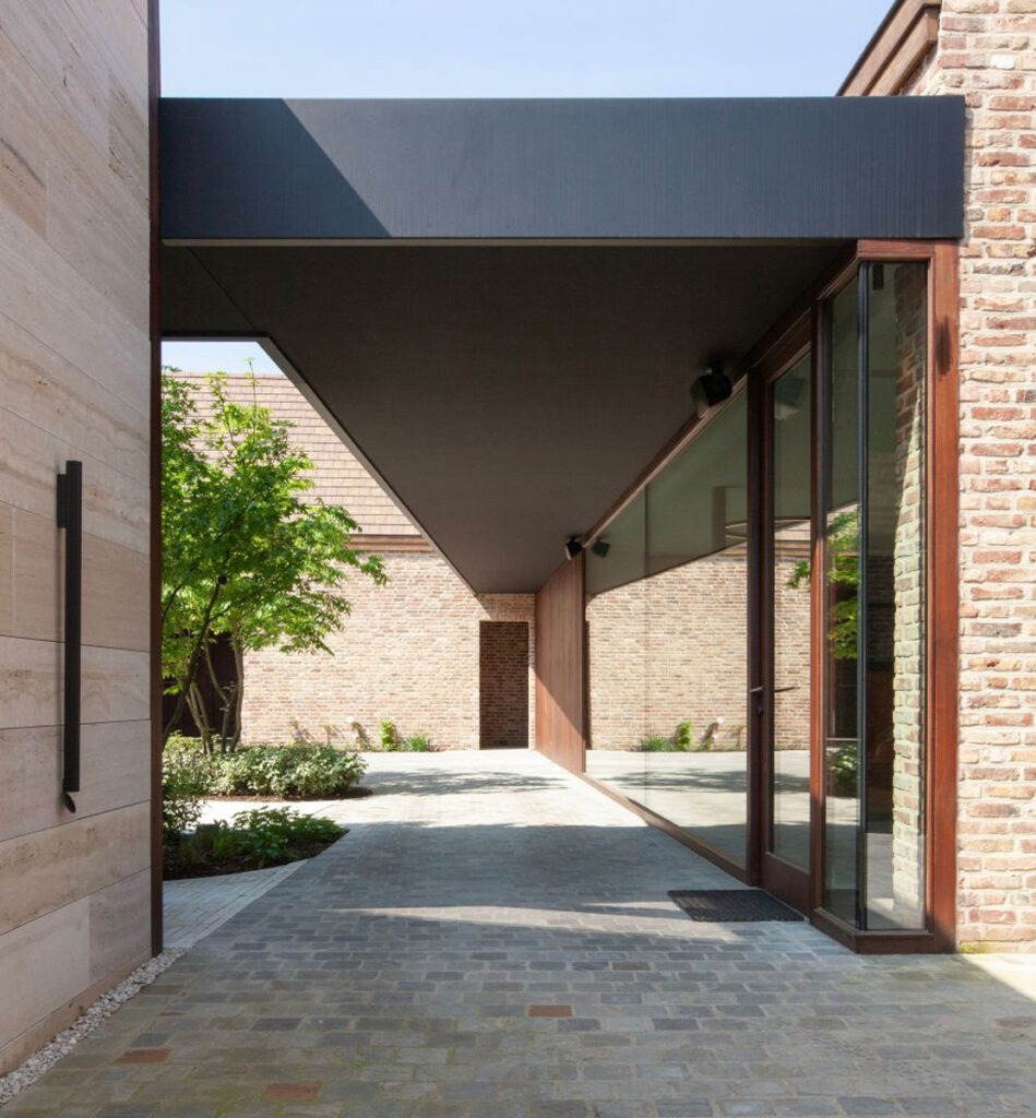 Decennialang waren vierkantshoeves beeldbepalend op het platteland. Het schikken van het woongebouw en de stallen rond een centrale koer maakte de architectuur uiterst efficiënt. Het was net die binnenkoer die de opdrachtgever sterk aansprak in deze hoeve. We hebben ze in ons ontwerp opgewaardeerd tot een buitenkamer met hoge belevingswaarde.