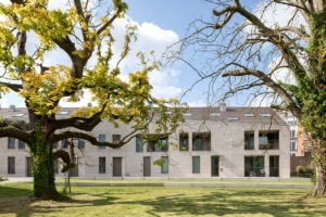 Herbestemming van een leegstaande site in Brugge centrum. Inbreidingsproject: bouwen van woonproject met 45 appartementen, 16 grondgebonden woningen, een poortwoning, een tuinpaviljoen en een ondergrondse parking.