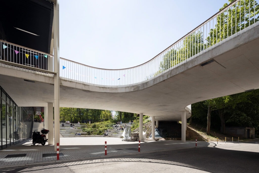 Op de grens van twee campussen vormt dit nieuwe studiecentrum een strategische en symbolische schakel in het universitaire landschap. Het gebouw bundelt een complex programma — bibliotheek, klaslokalen, auditoria, werkruimtes en kantoren — binnen een compact en helder volume. Het ontwerp zet in op transparantie, openheid en ontmoeting, met dynamische gevels, flexibele ruimtes en een centrale rotonde als verdiept plein. De interne werking is zichtbaar van buitenaf, wat bijdraagt aan de toegankelijkheid en sociale dynamiek. Duurzaamheid is integraal: bijna-energieneutraal, met passieve systemen, hernieuwbare energie en natuurlijke waterzuivering van afvalwater. Het gebouw overstijgt zijn fysieke functie en wordt het kloppend hart van de campus — een plek waar studenten, onderzoekers en externe partners samenkomen in een toekomstgerichte leeromgeving die interactie, welzijn en maatschappelijke innovatie stimuleert.