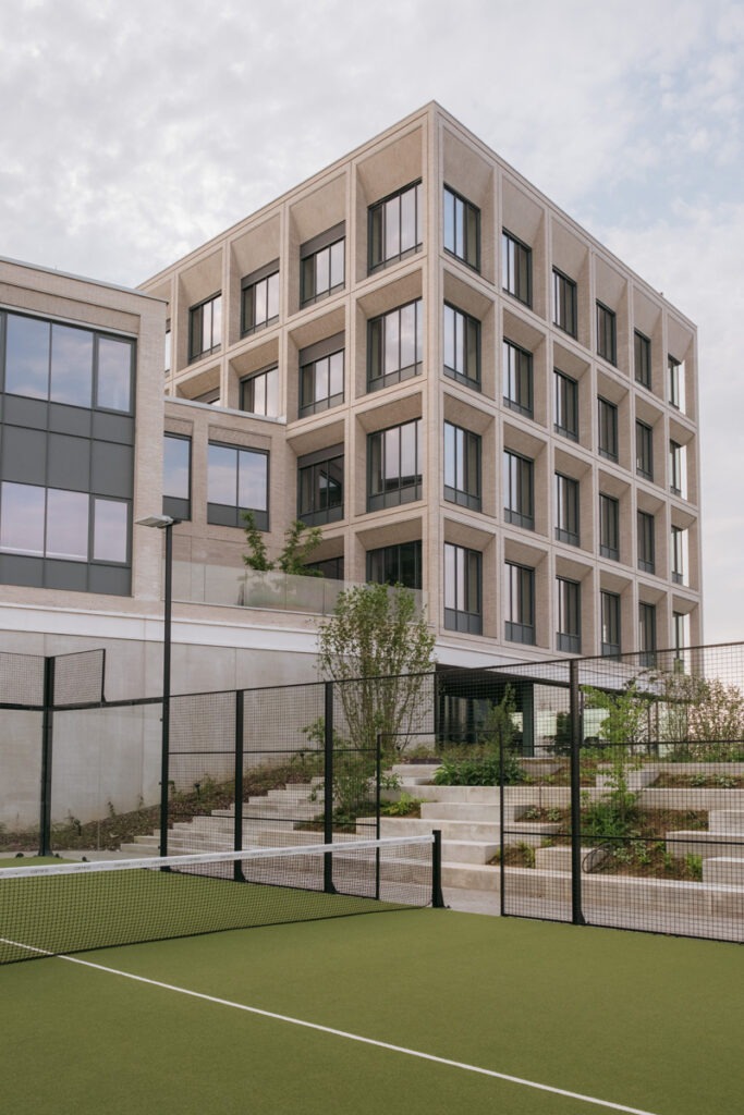 Zo is er centraal langs de padenstructuur tussen In The Yard en het naastliggende Durabrik een padel terrein met tribune geïntegreerd. Het vormt een plek van verbinding en verpozing tussen en voor de medewerkers.